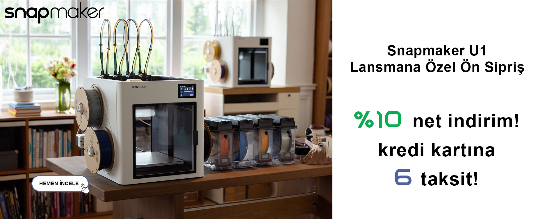 5 İnç Dokunmatik Ekran | 256 × 256 × 256 mm baskı alanı | 20 renge kadar çoklu baskı (5 adet AMS ünitesi ile birlikte) | Spagetti hatası tespiti (filament tasarrufu sağlar) | Otomatik Akış Dinamiği Kalibrasyonu | 0.4 mm sertleştirilmiş çelik nozzle | Aktif Havalandırma Filament Kurutma