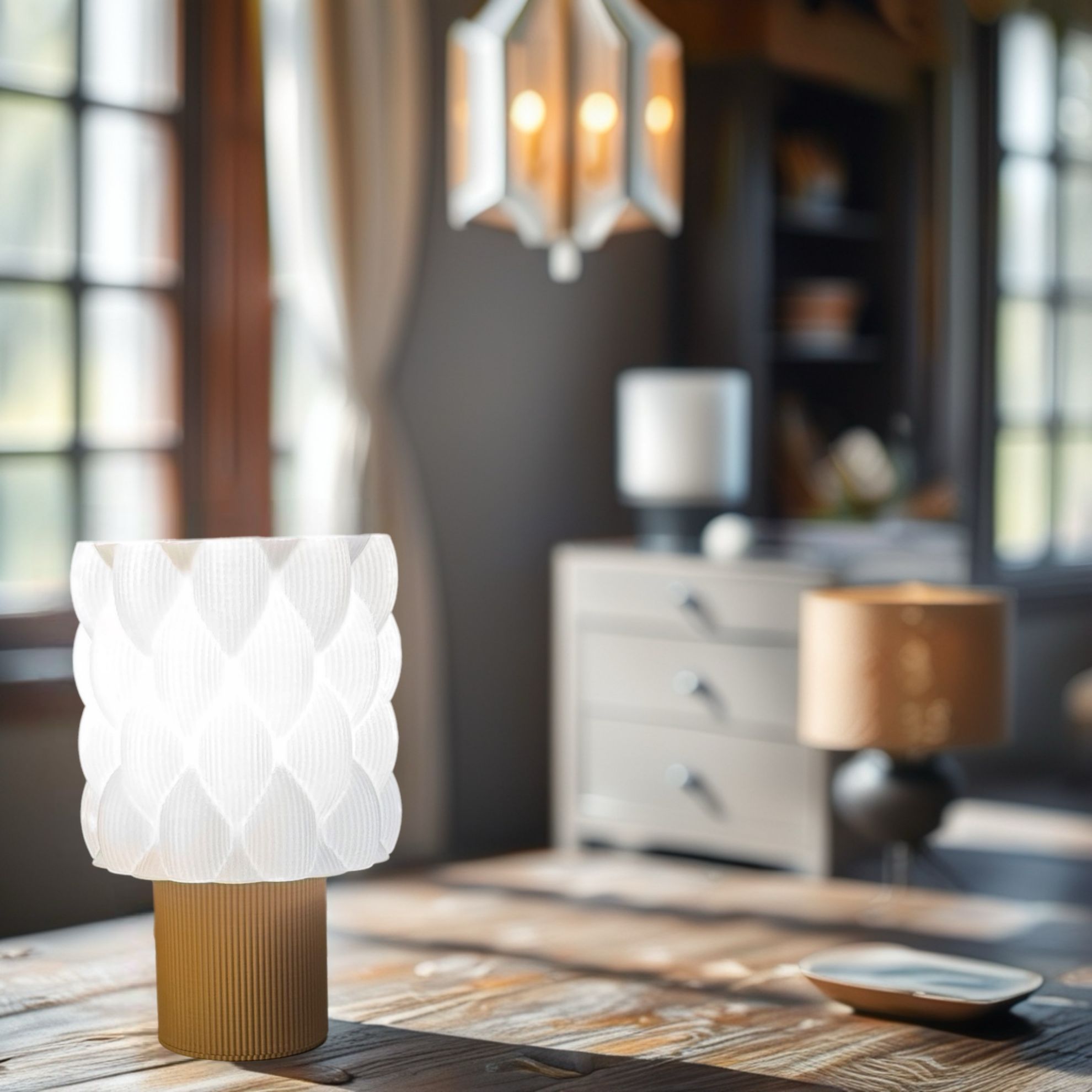 3D baskı teknolojisi ile üretilmiş olan bu lamba, el işçiliği ve modern teknolojinin mükemmel bir birleşimini temsil eder. Bu özgün tasarım, her bir lambanın benzersiz olmasını sağlayarak, kullanıcılarına kişisel bir dokunuş sunar. Yüksekliği 18cm ve genişliği 12 cm olan bu masa lambası, kompakt yapısıyla her türlü masa veya yan sehpa üzerinde rahatlıkla kullanılabilir.