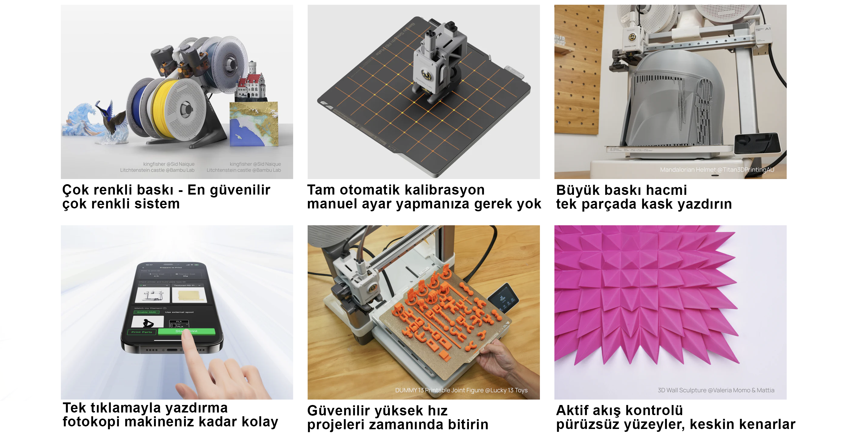 - Çok renk / çok malzeme: AMS Lite entegrasyonuyla kolay multi-color baskı. (Not: A1’de “AMS” uyumsuz; AMS Lite kullanılır.)