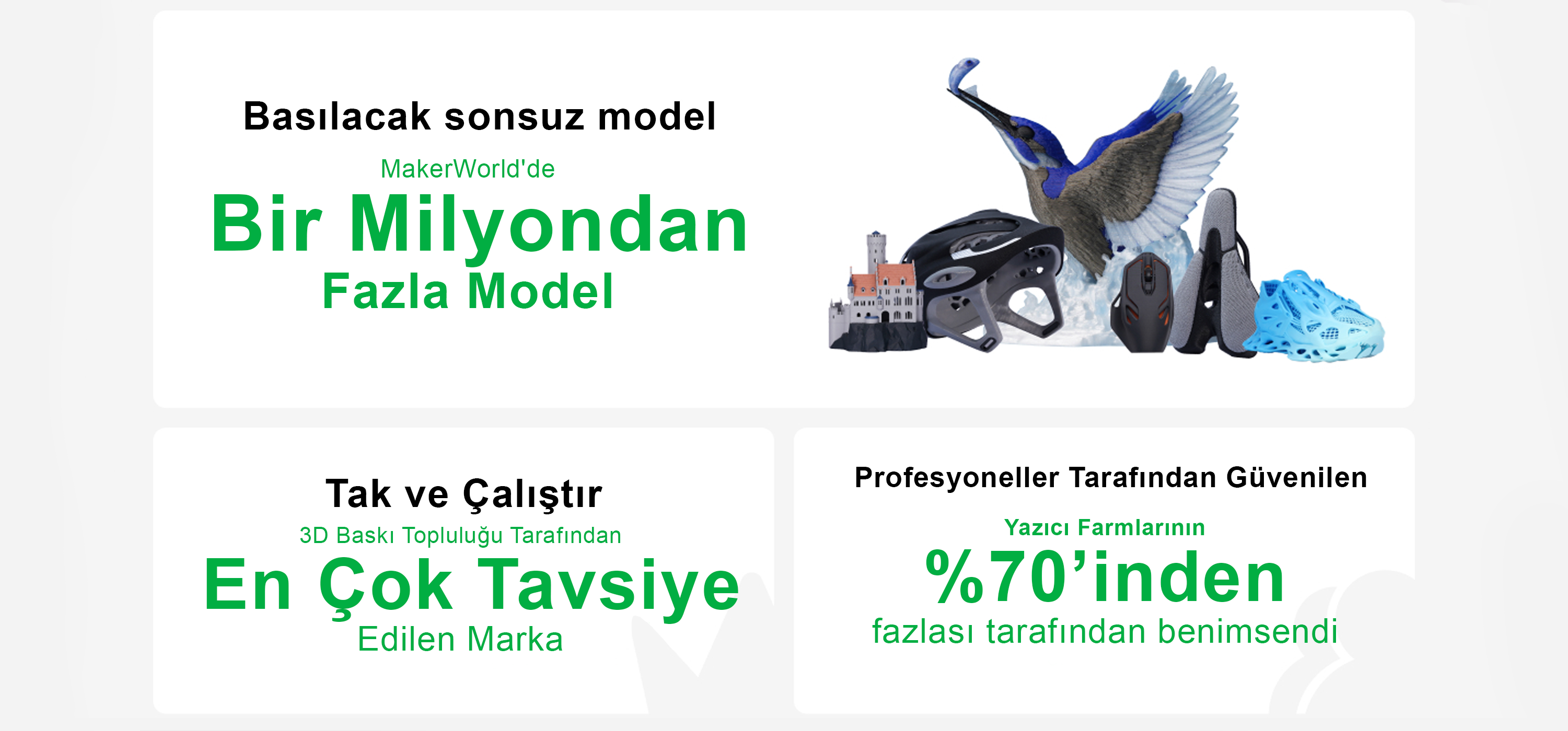 Bambu Textured PEI (dâhil); Smooth PEI / Dual-Texture / High-Temp / Cool Plate uyumlu |